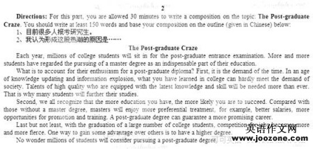 2010年06月六级英语作文预测:关于报考研究生(图)