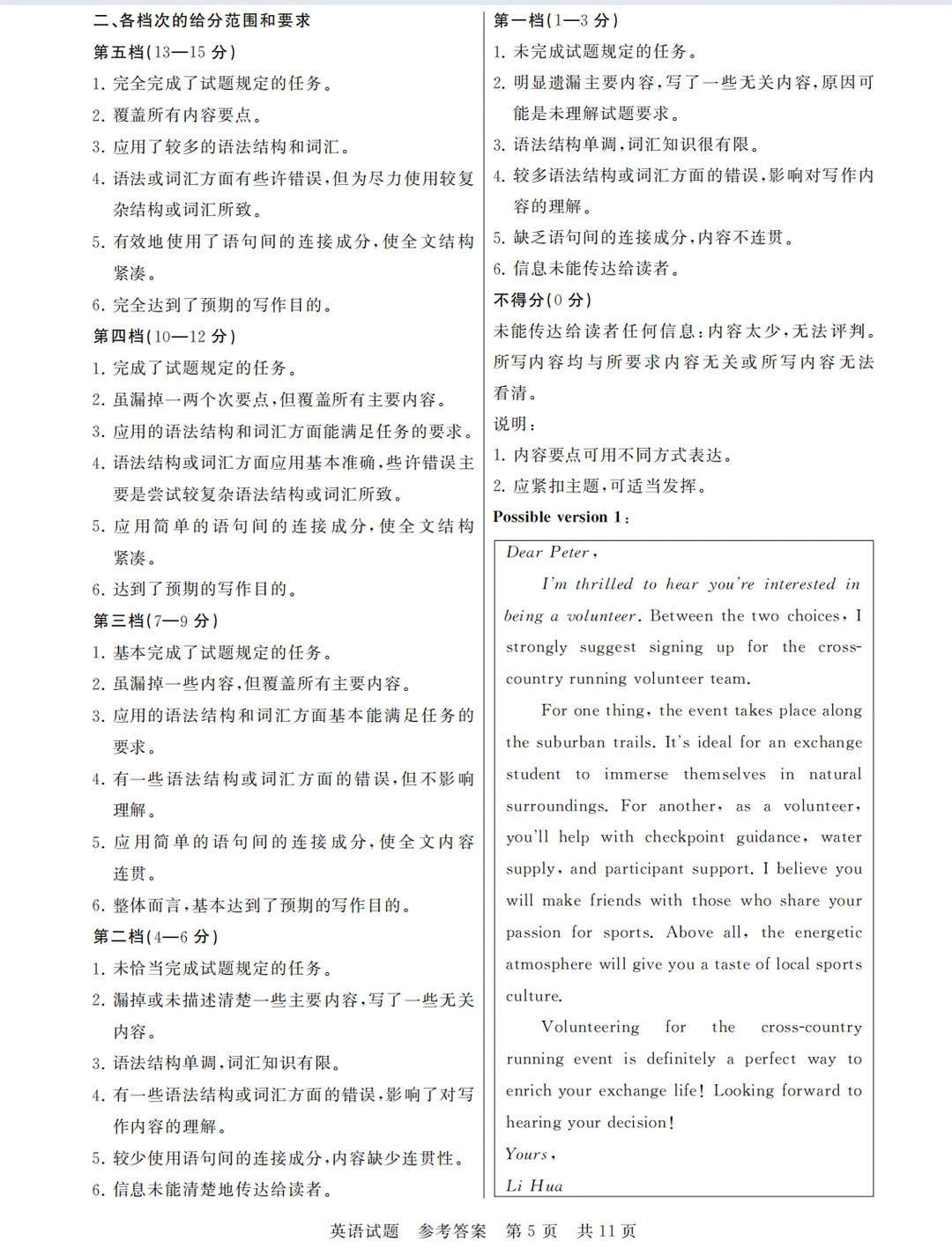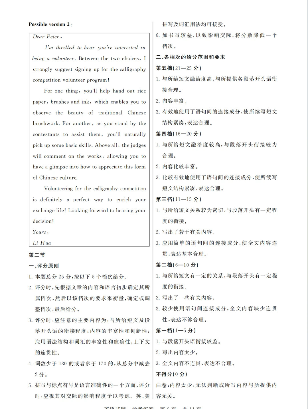 5.拼写与标点符号是语言准确性的一个方面,评分时,应视其对交际的影响程度予以考虑。英、美排写及词汇用法均可接受。