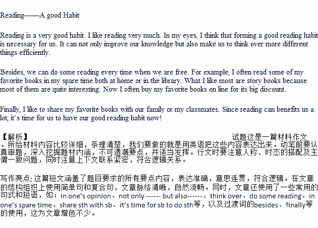 你喜欢阅读吗?请你以 “Reading—A good Habit” 为题写一篇有关阅读的短文。